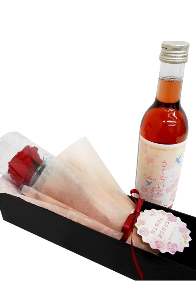 お水やりなどのお手入れなしで飾れるプリザーブドフラワーの限定ギフトセットです。
